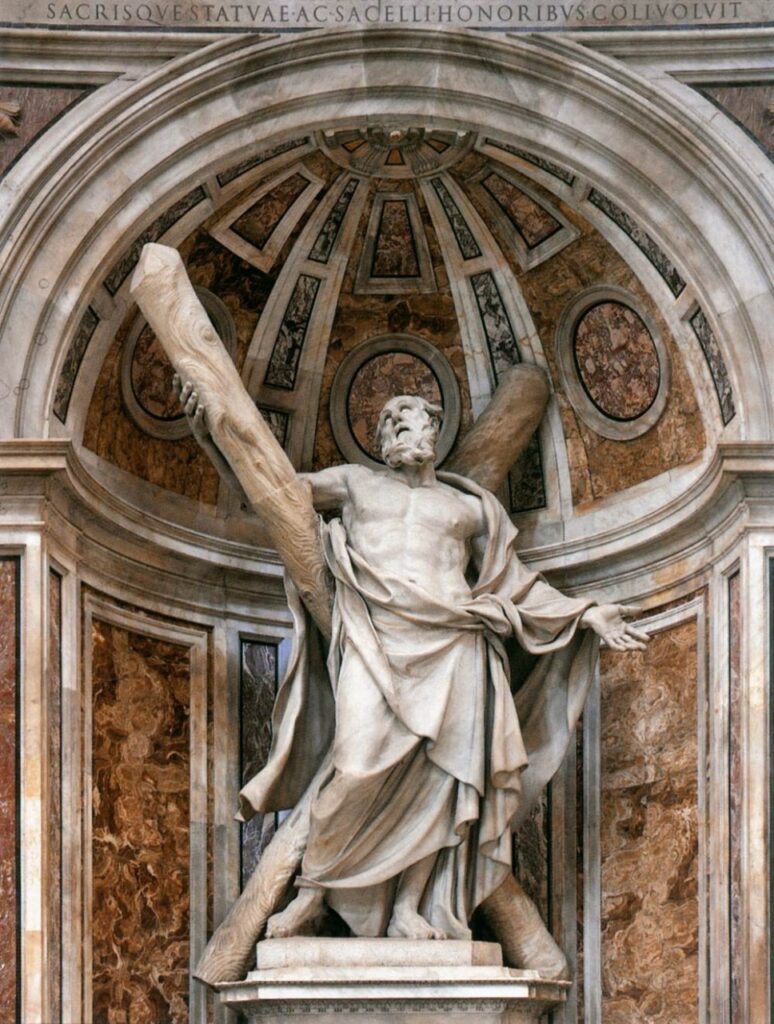 “Aziz Andreas’ın başının teslimi” olayını çok az kişi bilir. Vatikan’daki Aziz Petrus Bazilikası’nda, yüksek sunağın etrafında, dört sütuna karşılık gelen dört şapel vardır. Yüksek sunağın altında Aziz Petrus’un kemikleri bulunur. Sunağın etrafındaki dört şapel, Hristiyanlığın en değerli dört kutsal emanetini barındırır ve her biri ilgili azizin heykeliyle süslenmiştir: